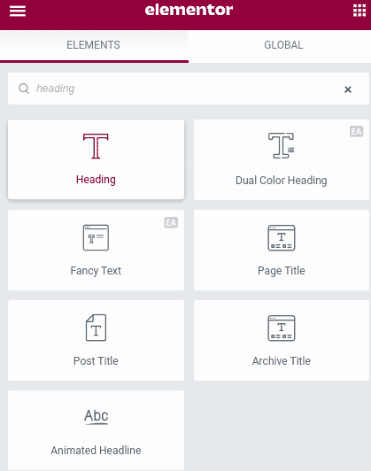 Select Heading and then drag it to the desired location on your page.